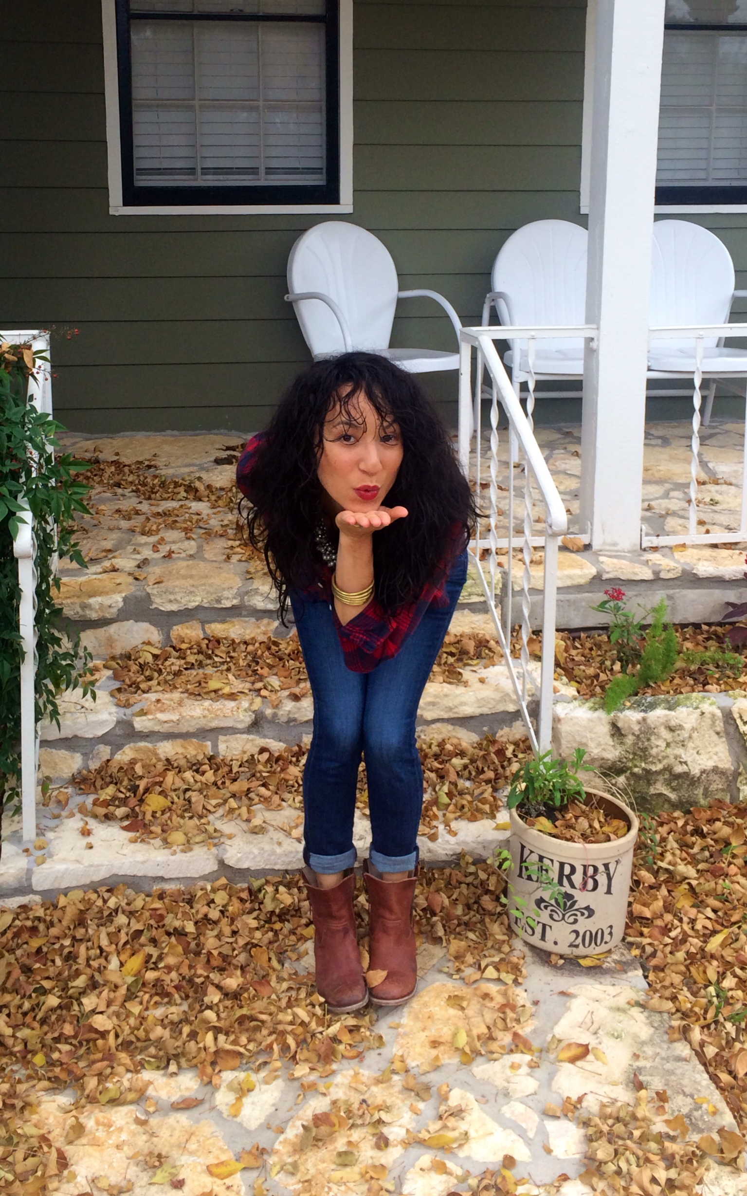 From play dates to date night, this shirt transitions easily in my laid back town. I paired it with a pair of AG Stevie jeans from Anthro I bought during the summer for 50% off and my early Christmas present – yep, the boots (amazon). For the finishing touch, add a sparkly necklace.